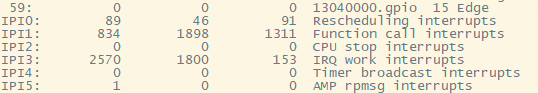 cat /proc/interruptIPI5: 12 0 0 AMP rpmsg interrupts
