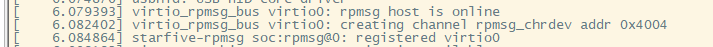 (4)启动Linux:启动linux过程中,virtio_rpmsg_bus驱动会注册,virtio_rpmsg_starfive驱动也会被注册,注册完成后会发IPI中断给RT-Thread。