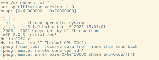 RT-Thread:使用开源的rpmsg-lite代码,也是开源的virtio-base的RPMsg代码,能够按照协议和Linux收发数据。核间的IPI中断和共享内存配合能实现异构核间的数据传输。RT-Thread代码路径如下: