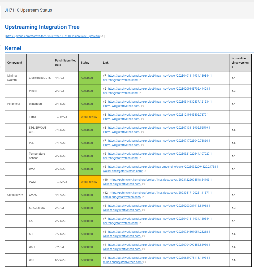 赛昉科技upstream状态(https://wiki.rvspace.org/en/project/JH7110_Upstream_Plan)
